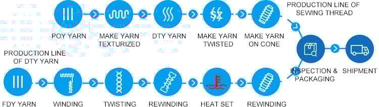 Sewing thread, poly poly core sewing thread,DTY yarn,FDY yarn,poly poly core spun yarn,dope dyed yarn,twisted.